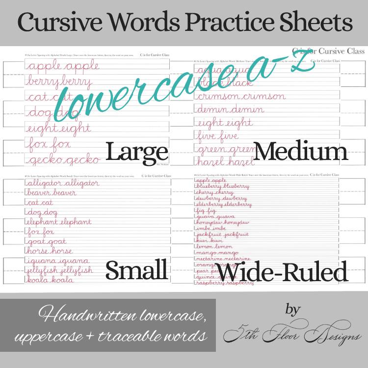 – 4 different sizes of cursive letters.